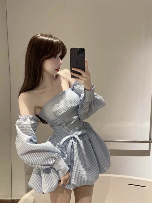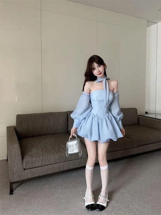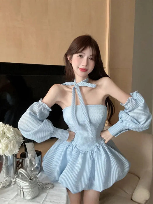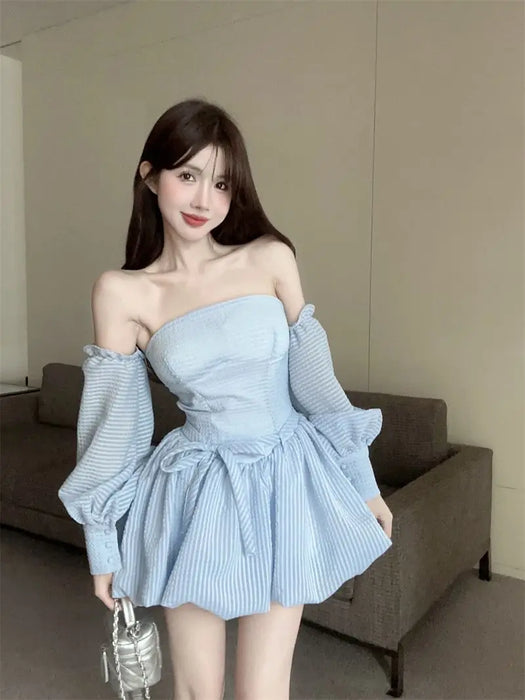 VenusFox French Strapless Dress Women Spring Summer Temperament High-end Sexy Backless Princess Puffy Dresses Shorts Set