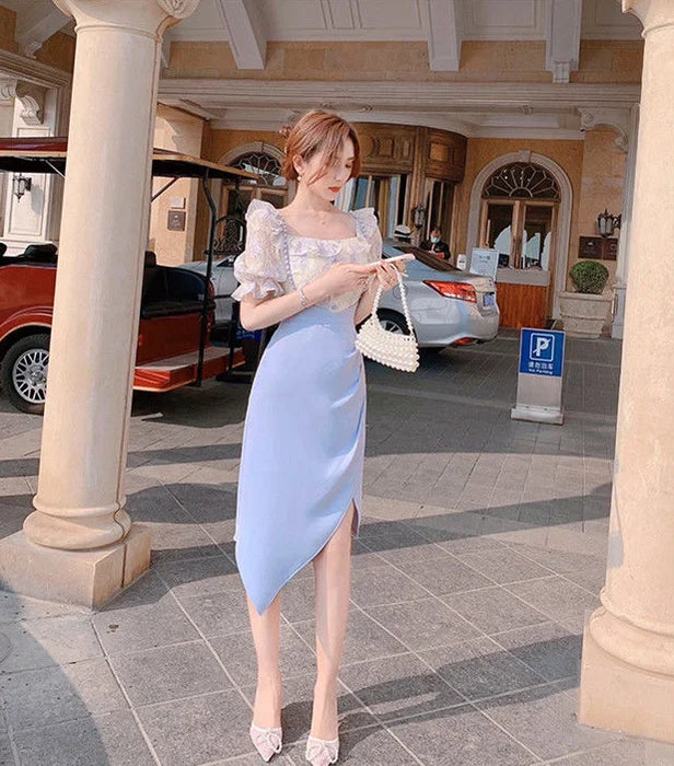2 Pieces Sets for Women Short Sleeve Skirt Slit Kawaii Clothing Trend 2024 Formal Occasion Luxury Designer Event Woman Outfit