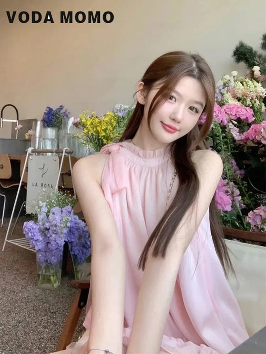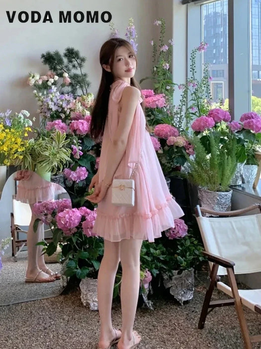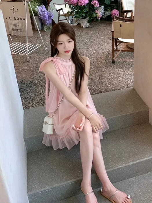 Elegant Dress Korean Style Fashion Pure Color Dress Female 2023 New Summer Sweet Y2k Mini Dress Party Women Casual Sleeveless