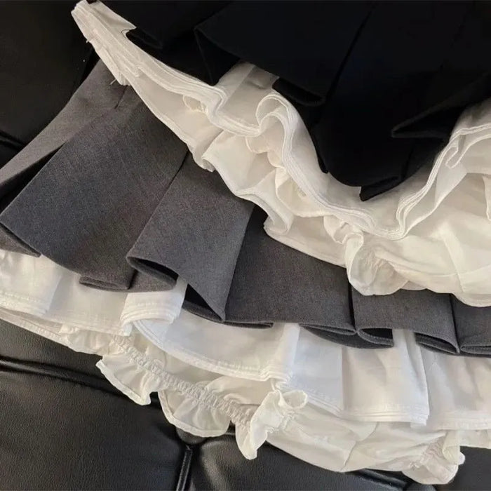 Ruffles Black Mini Skirt Women Korean Patchwork Pleated Skirts Japanese Kawaii High Waist All Match A Line Skirt New