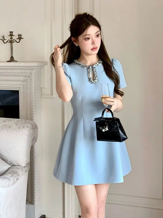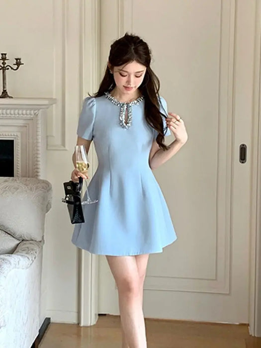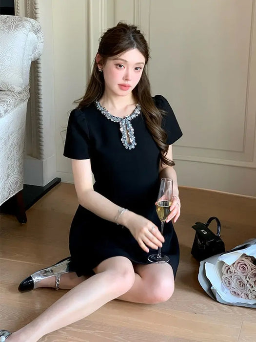 VenusFox 2025 French Luxury Designer Sequined Summer Dresses For Woman Elegant Fashion Casual Short Dress Party Vestidos Feminino Robes